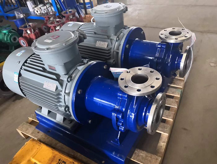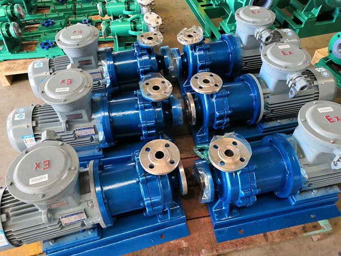 磁力泵是利用永磁聯軸器工作原理無接觸的傳遞扭矩的新型泵,當原動機帶動外磁鋼轉動時,通過磁場的作用驅動內磁鋼轉子同步旋轉,而內磁鋼轉子和葉輪連成一體,從而達到無接觸帶動葉輪轉動之目的。由于液體被封閉在靜止的隔離套內,所以磁力泵是一種全封閉、無泄漏的產品,因此完全避免了機械密封離心泵不可避免的跑、冒、滴、漏的弊病。