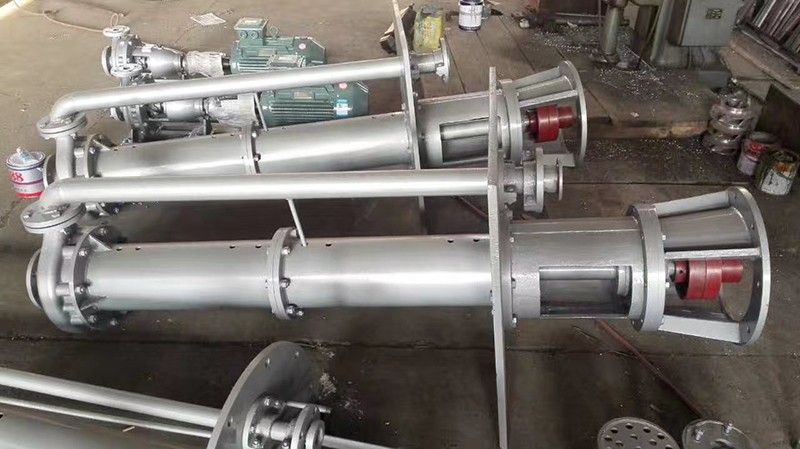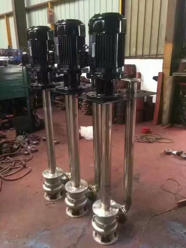 液下化工泵的形式為長軸立式離心泵,與介質接觸部分采用鑄鋼或不銹鋼制造,根據(jù)客戶要求液下深度由0.5m-6m不等,工作部分淹沒與液體中,具有使用范圍廣,效率高,無需灌液即能輸送,由于泵運轉產生的軸向力及徑向力分別由液上部分的滾動軸承和液下的滑動軸承支撐,因此運行寧靜無噪音,是集環(huán)保節(jié)能的高科技產品。